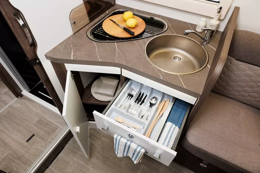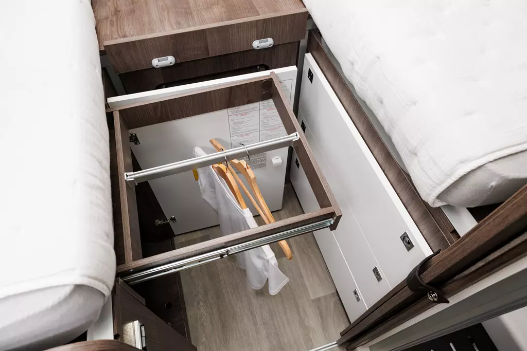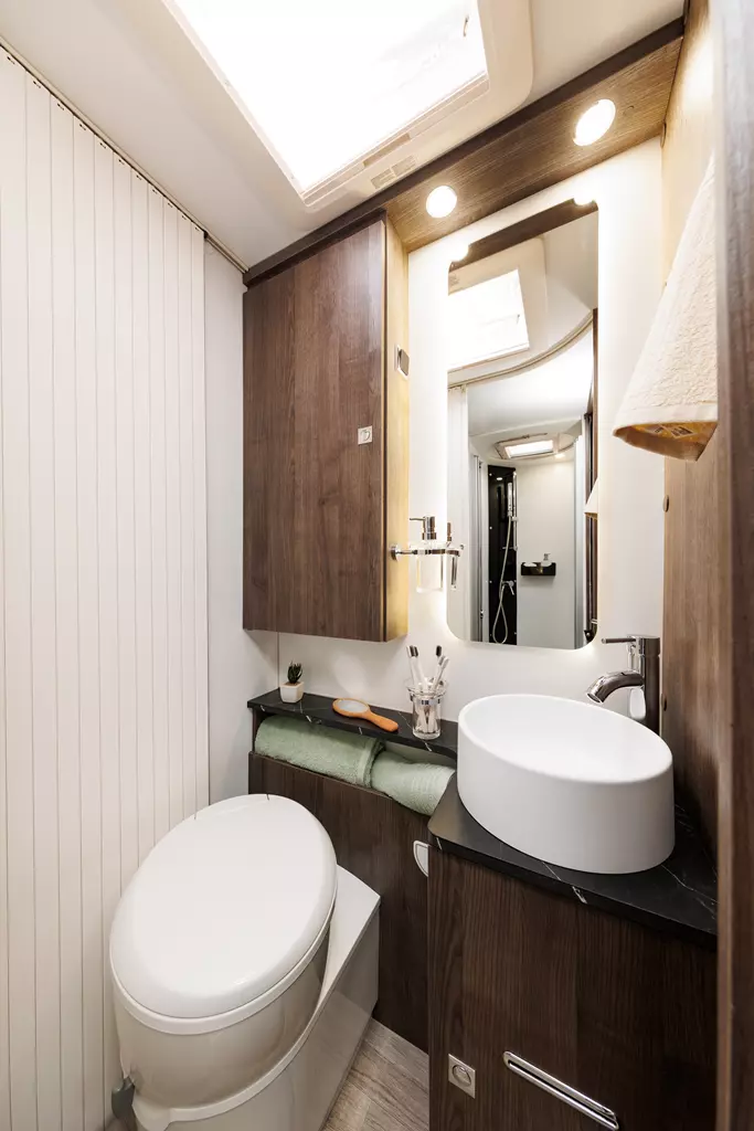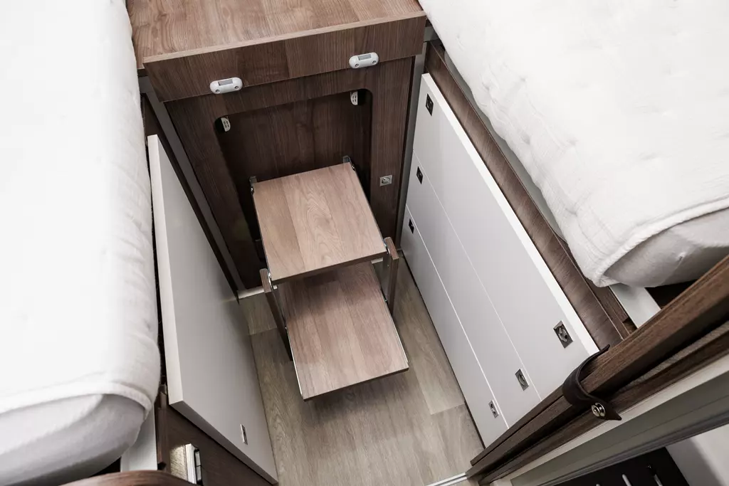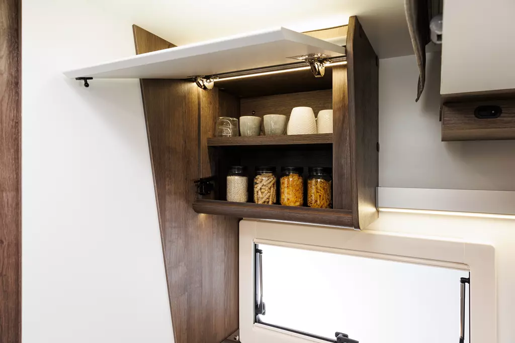 To jeden z najbardziej funkcjonalnych kamperów w swojej klasie. Benimar Tessoro 463UP to wersja stworzona z myślą o rodzinach, parze z dziećmi lub grupie znajomych, którzy cenią sobie przestrzeń, wygodę i nowoczesne rozwiązania. Na pokładzie znajdziesz dwa pojedyncze łóżka w tylnej części pojazdu z możliwością ich połączenia w jedno duże łoże, oraz elektrycznie opuszczane łóżko nad salonem, które w ciągu kilku sekund zmienia część dzienną w komfortową sypialnię.
